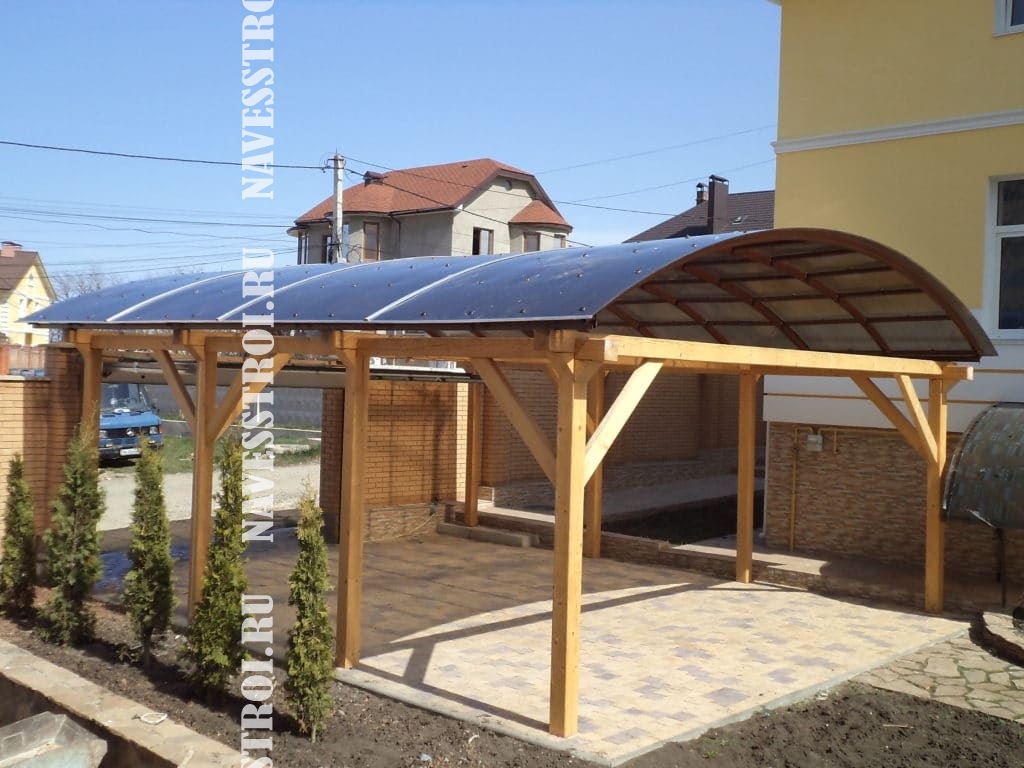 За день на даче изготовили арочный навес 5 на 7 с покрытием поликарбоната. Привезли уже готовые крашенные фермы и весь остальной материал. Все за собой убрали и увезли мусор. Молодцы!